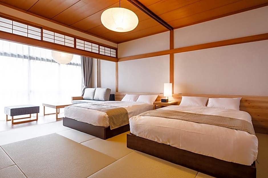 The rooftop pool and private open-air bath are the special features of this family room. The spacious family room provides air conditioning, tatami, as well as a private bathroom featuring a bath and a shower. Boasting a terrace, this family room also offers a wardrobe, a safe deposit box and a flat-screen TV. The unit offers 2 beds and 2 futons.