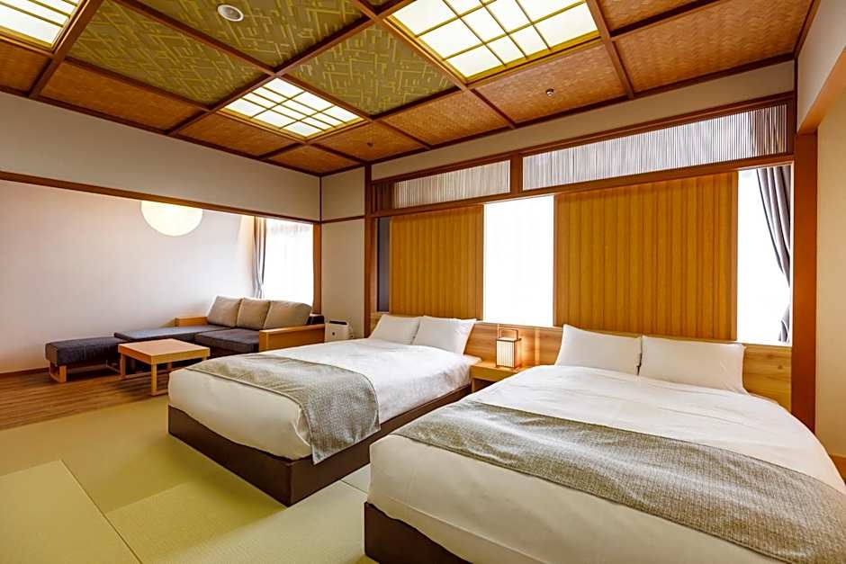 The rooftop pool and private open-air bath are the special features of this family room. The spacious family room provides air conditioning, tatami, as well as a private bathroom featuring a bath and a shower. Boasting a terrace, this family room also offers a wardrobe, a safe deposit box and a flat-screen TV. The unit offers 2 beds and 2 futons.